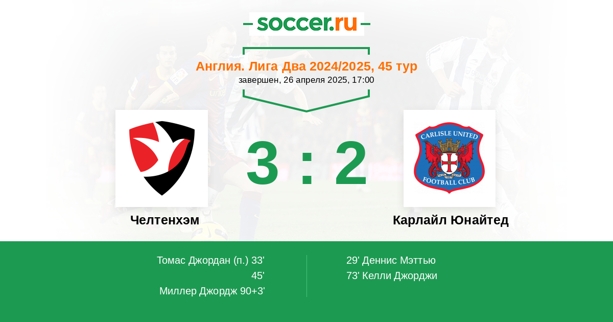 Протокол матча Челтенхэм против Карлайл Юнайтед