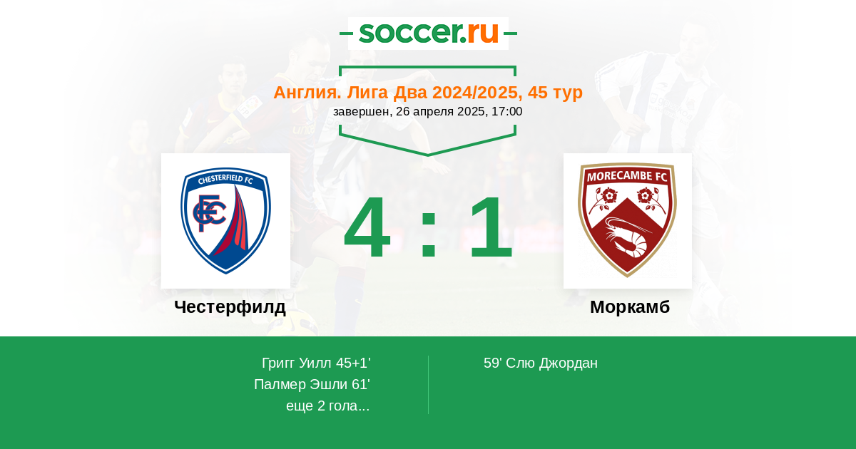 Протокол матча Честерфилд против Моркамб