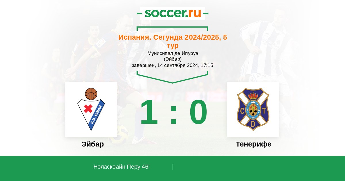 Протокол матча Эйбар против Тенерифе