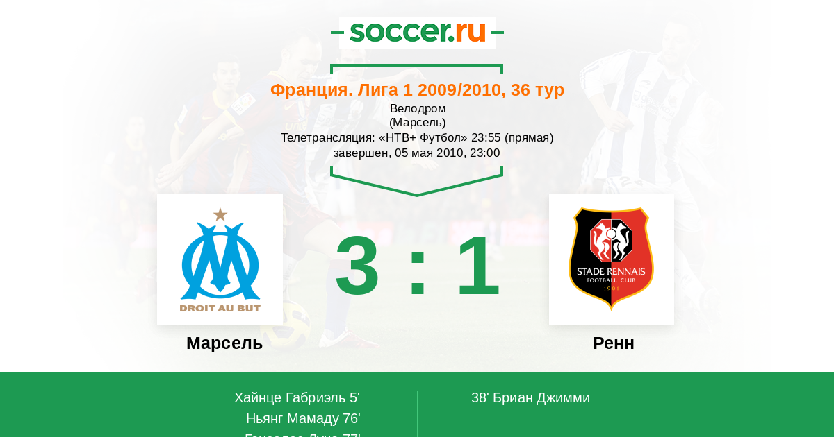 Протокол матча Марсель против Ренн