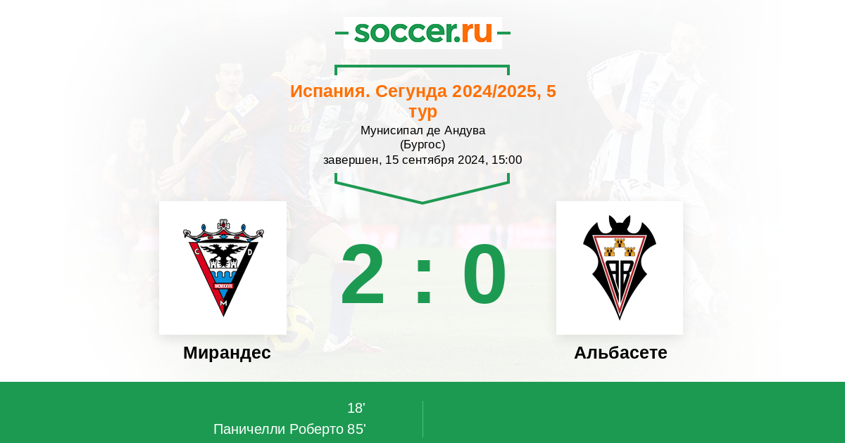 Протокол матча Мирандес против Альбасете