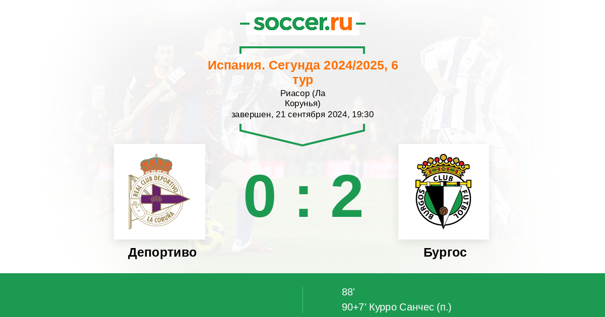 Протокол матча Депортиво против Бургос