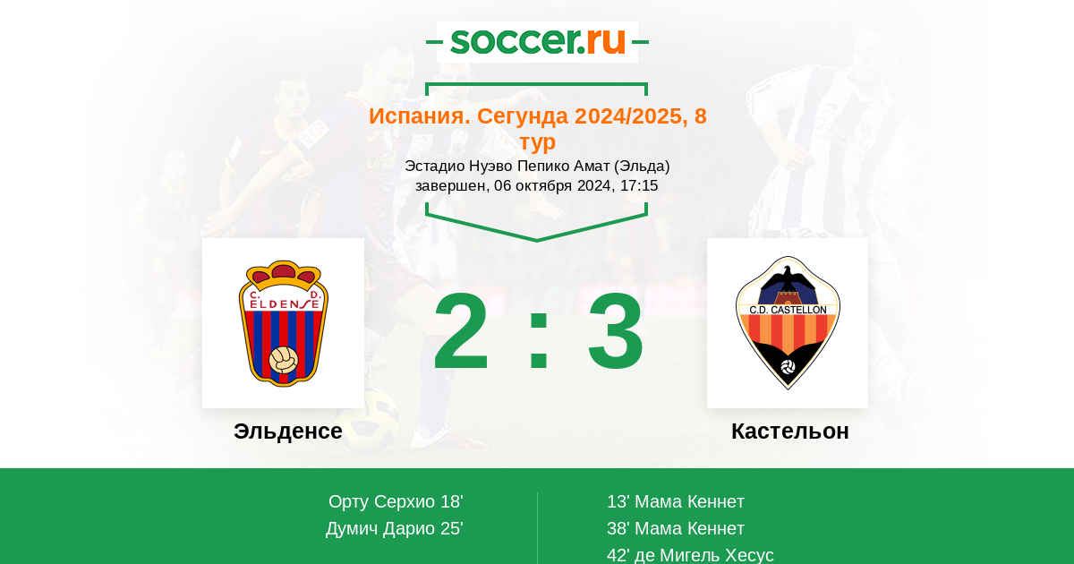 Протокол матча Эльденсе против Кастельон