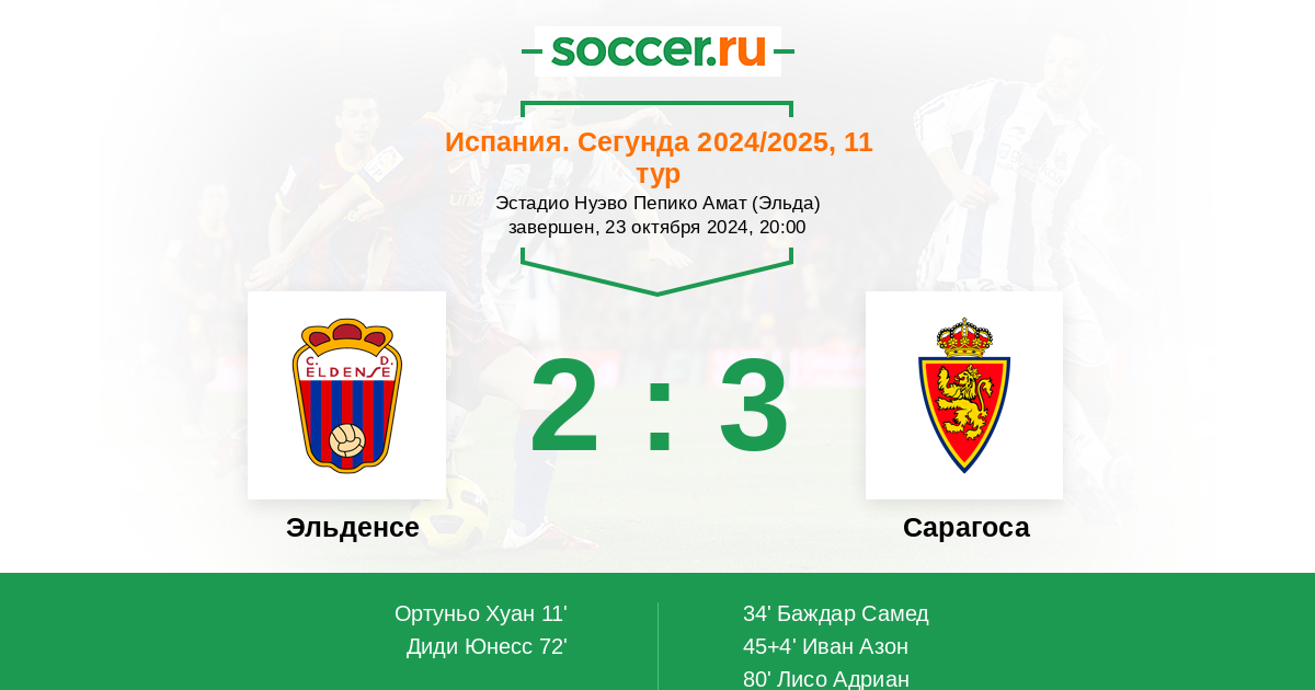 11' (1:0) Ортуньо Хуан (11) (Гарсия Виктор (17))