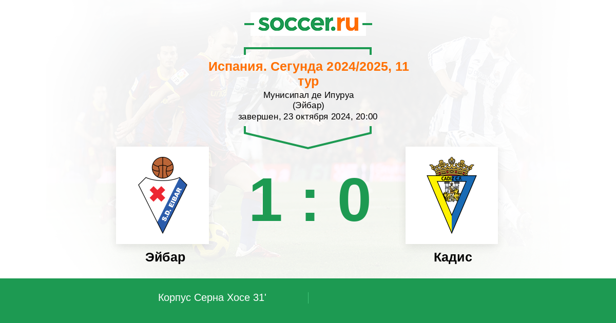 31' (1:0) Корпус Серна Хосе (17) (Антонио Пуэртас (20))