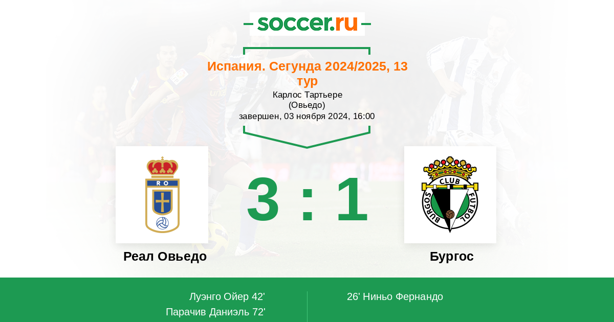 Протокол матча Реал Овьедо против Бургос