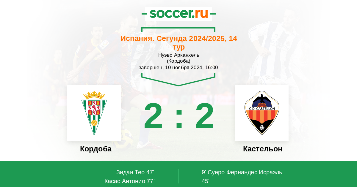 Протокол матча Кордоба против Кастельон