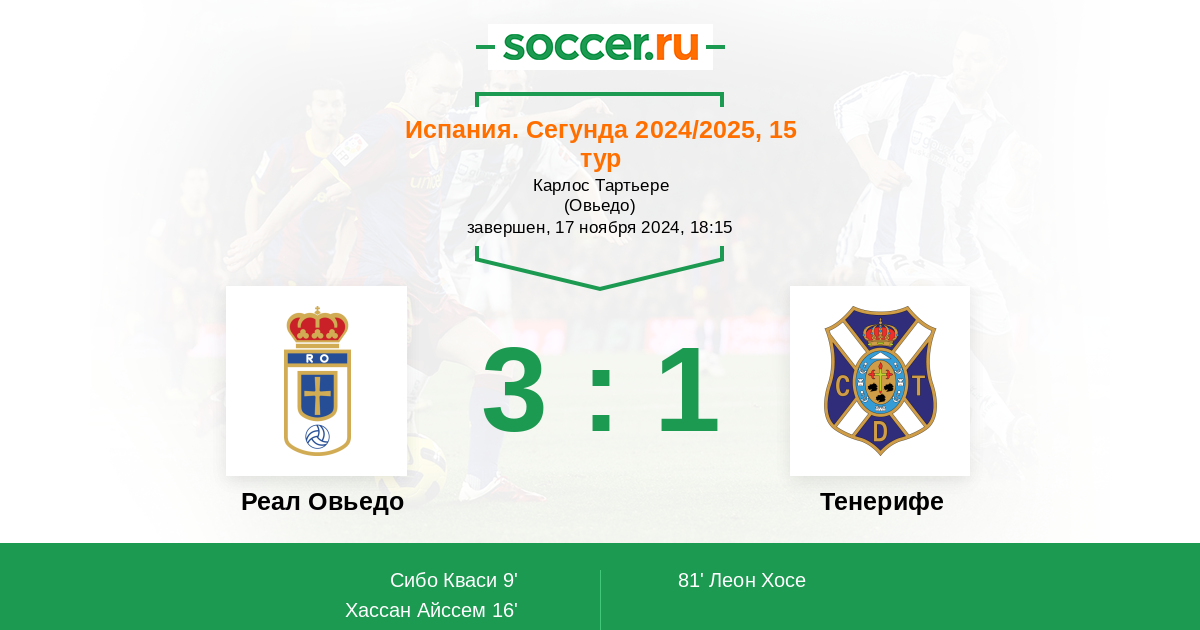 Протокол матча Реал Овьедо против Тенерифе