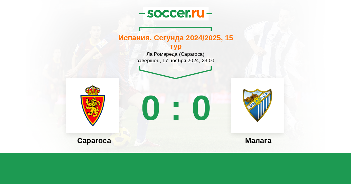 Протокол матча Сарагоса против Малага