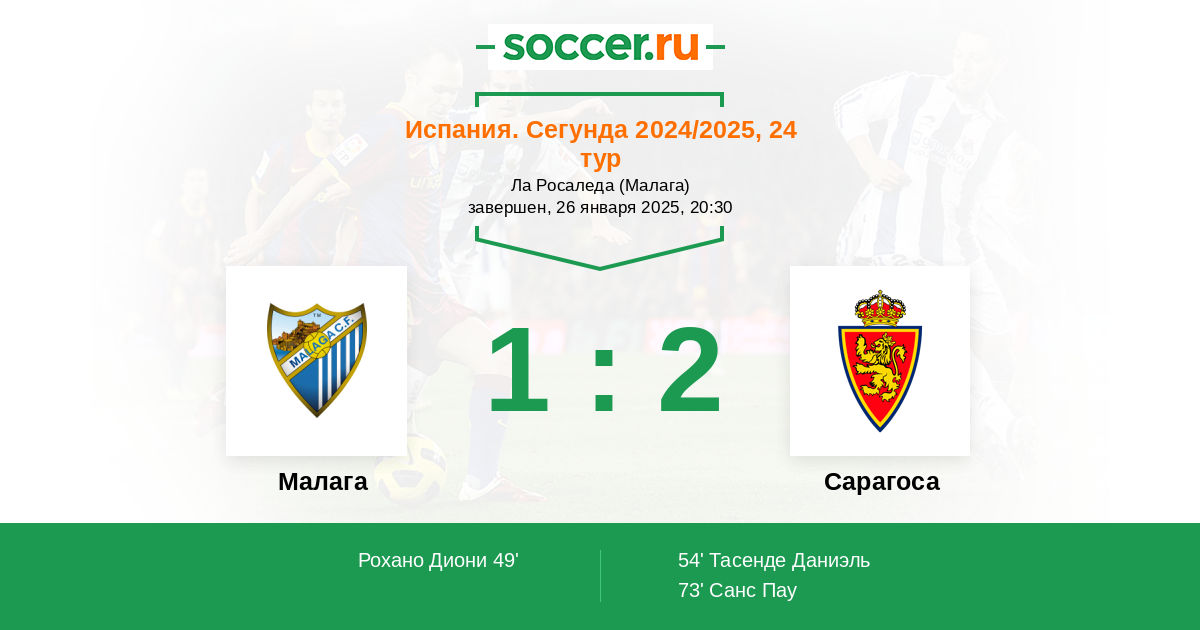 Протокол матча Малага против Сарагоса