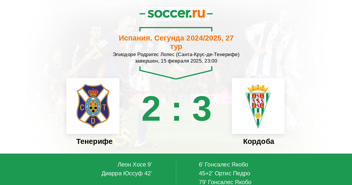 Протокол матча Тенерифе против Кордоба