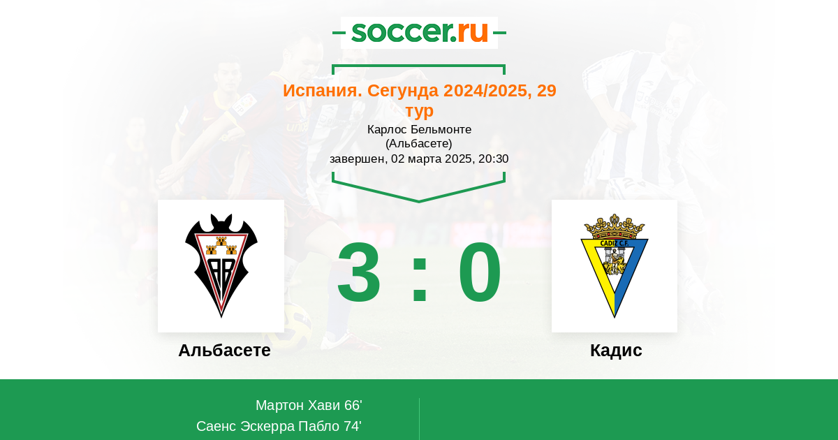74' (2:0) Саенс Эскерра Пабло (21) (Морсильо Хон (22))