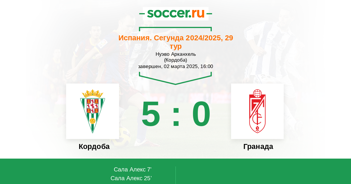 Протокол матча Кордоба против Гранада