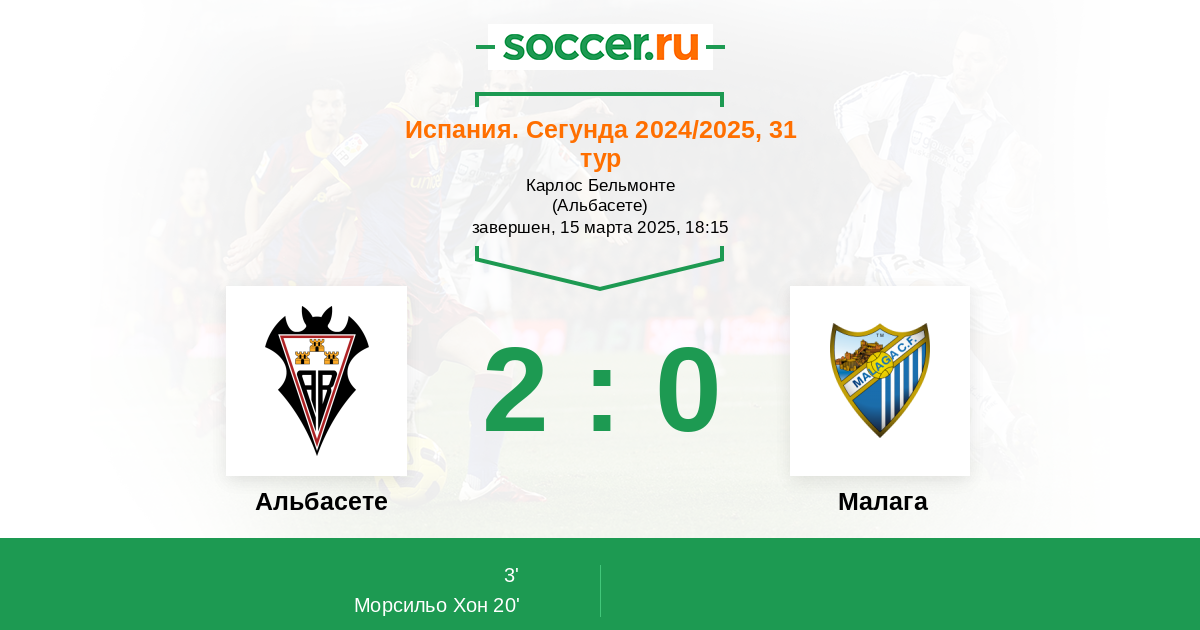 Протокол матча Альбасете против Малага