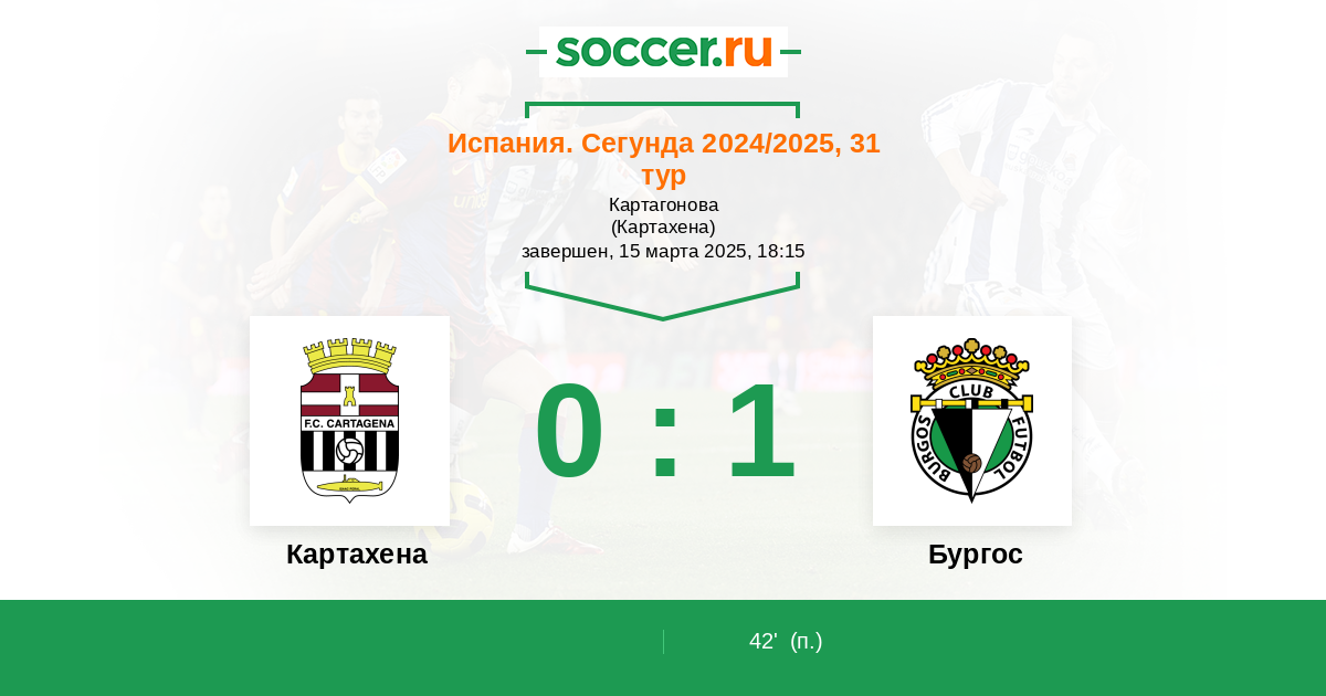 Протокол матча Картахена против Бургос