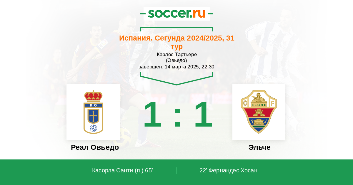 Протокол матча Реал Овьедо против Эльче