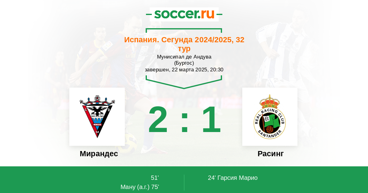 24' (0:1) Гарсия Марио (40) (Мартин Андрес (11))