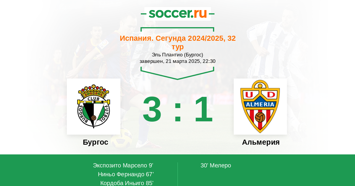 Протокол матча Бургос против Альмерия
