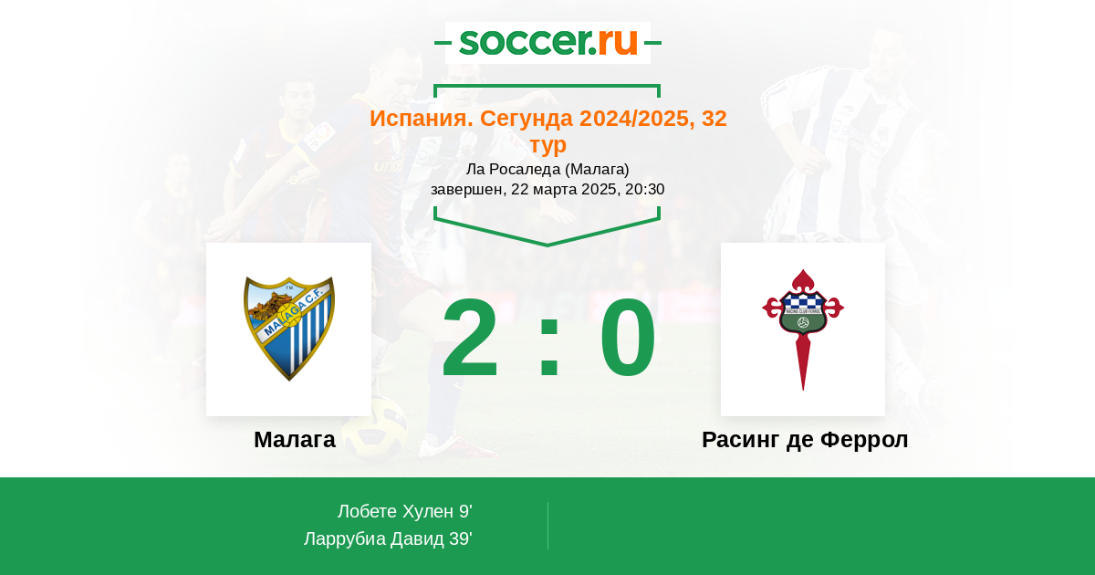 39' (2:0) Ларрубиа Давид (10) (Лобете Хулен (24))