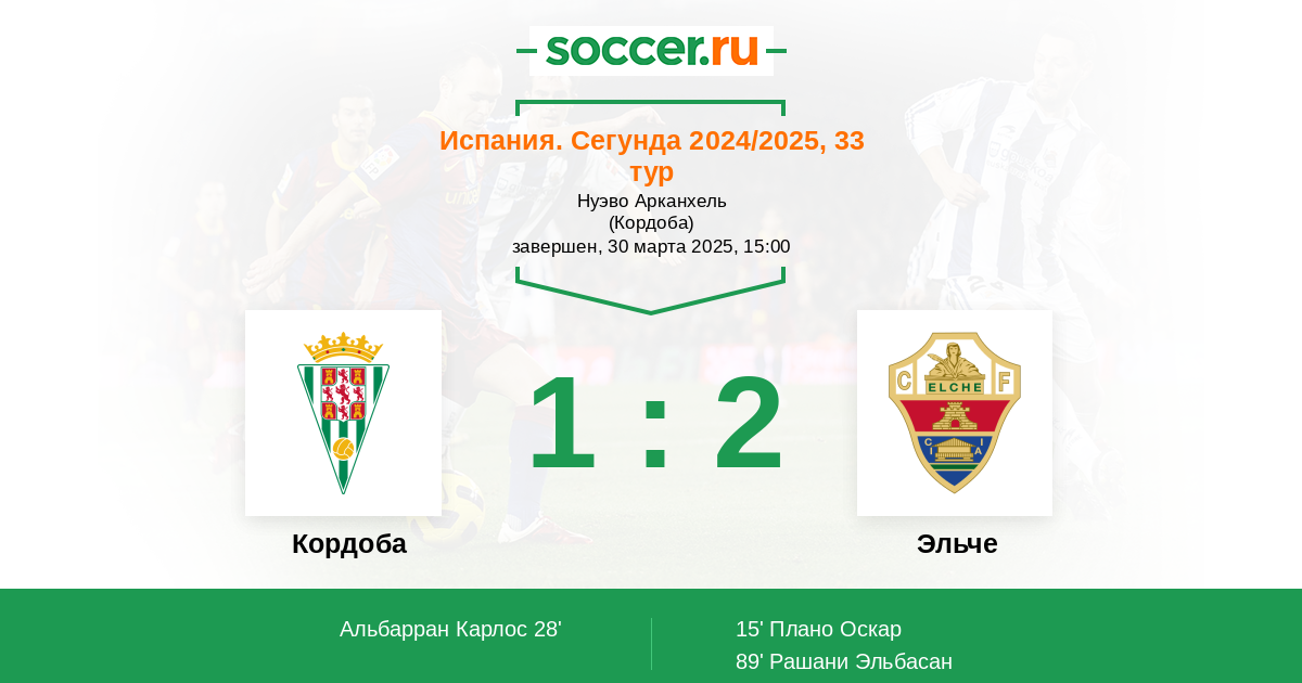 28' (1:1) Альбарран Карлос (21) (Карраседо Кристиан (23))