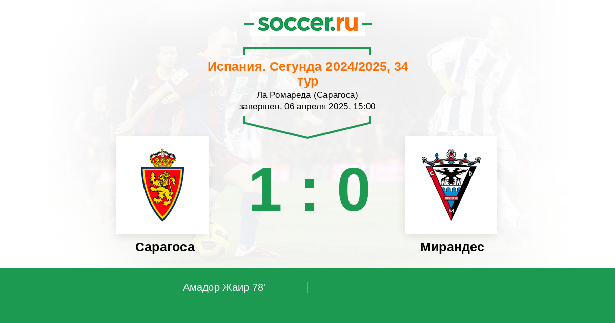 Протокол матча Сарагоса против Мирандес