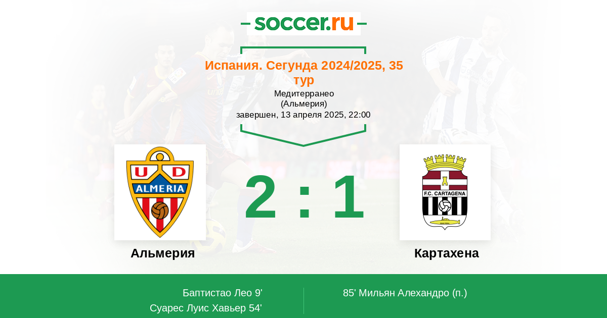 Протокол матча Альмерия против Картахена