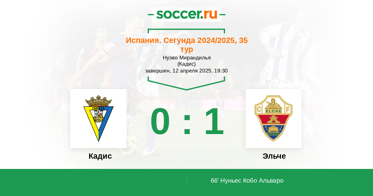 Протокол матча Кадис против Эльче