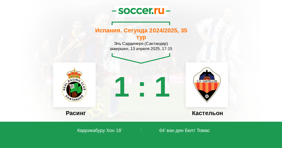 Протокол матча Расинг против Кастельон