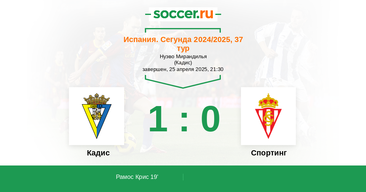 19' (1:0) Рамос Крис (16) (Марти Рохер (9))