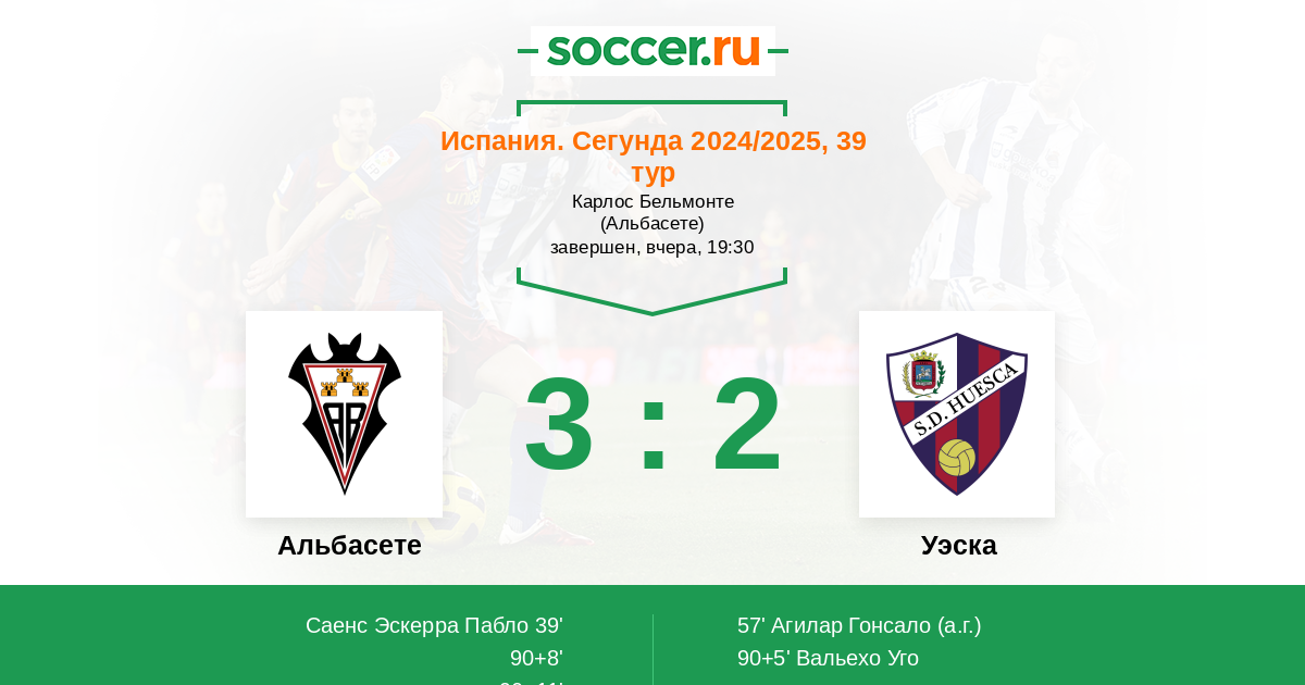 Протокол матча Альбасете против Уэска
