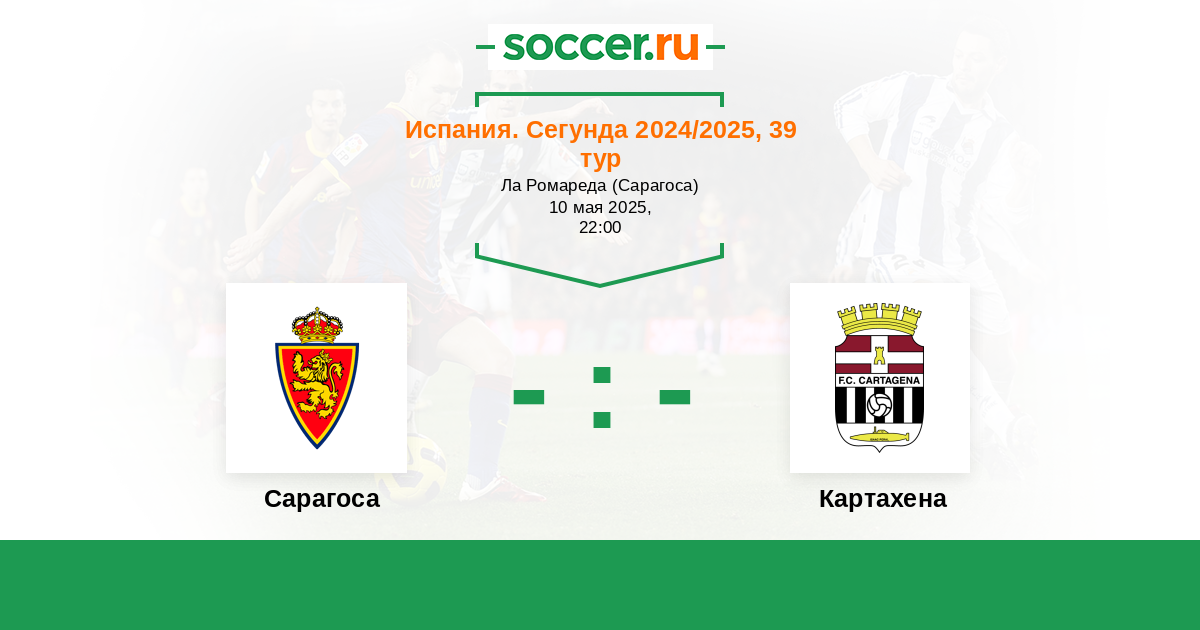 Протокол матча Сарагоса против Картахена