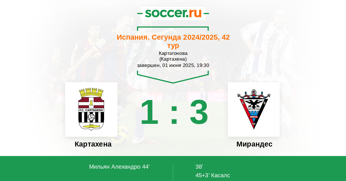 Протокол матча Картахена против Мирандес