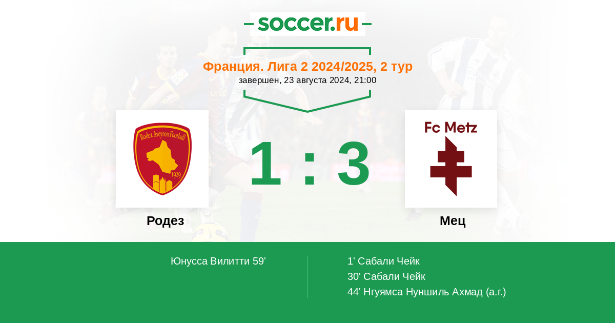 Протокол матча Родез против Мец