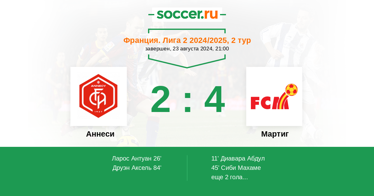 Протокол матча Анси против Мартиг