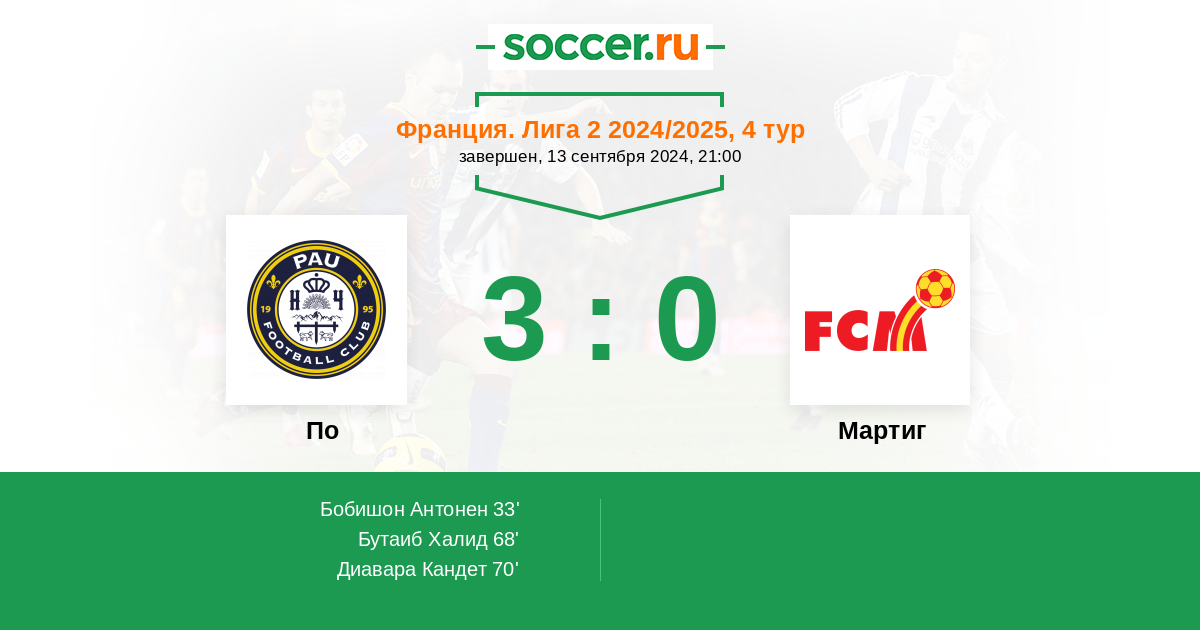 Протокол матча По против Мартиг