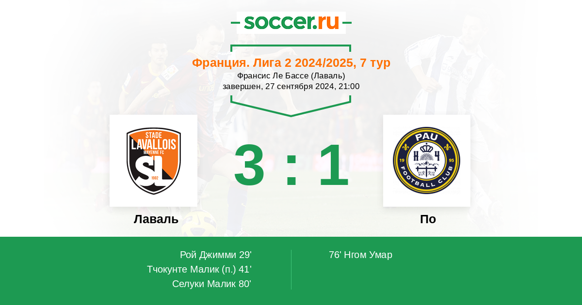 76' (2:1) Нгом Умар (6) (Бобишон Антонен (14))