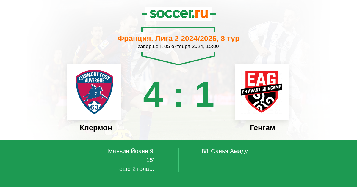 Протокол матча Клермон против Генгам