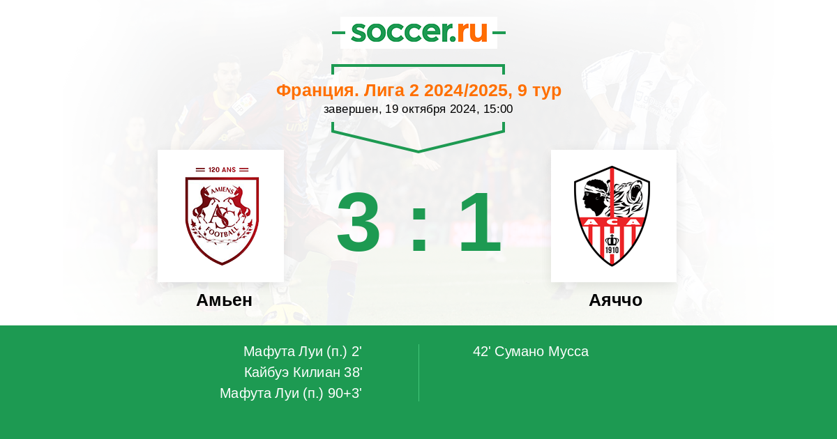 Протокол матча Амьен против Аяччо