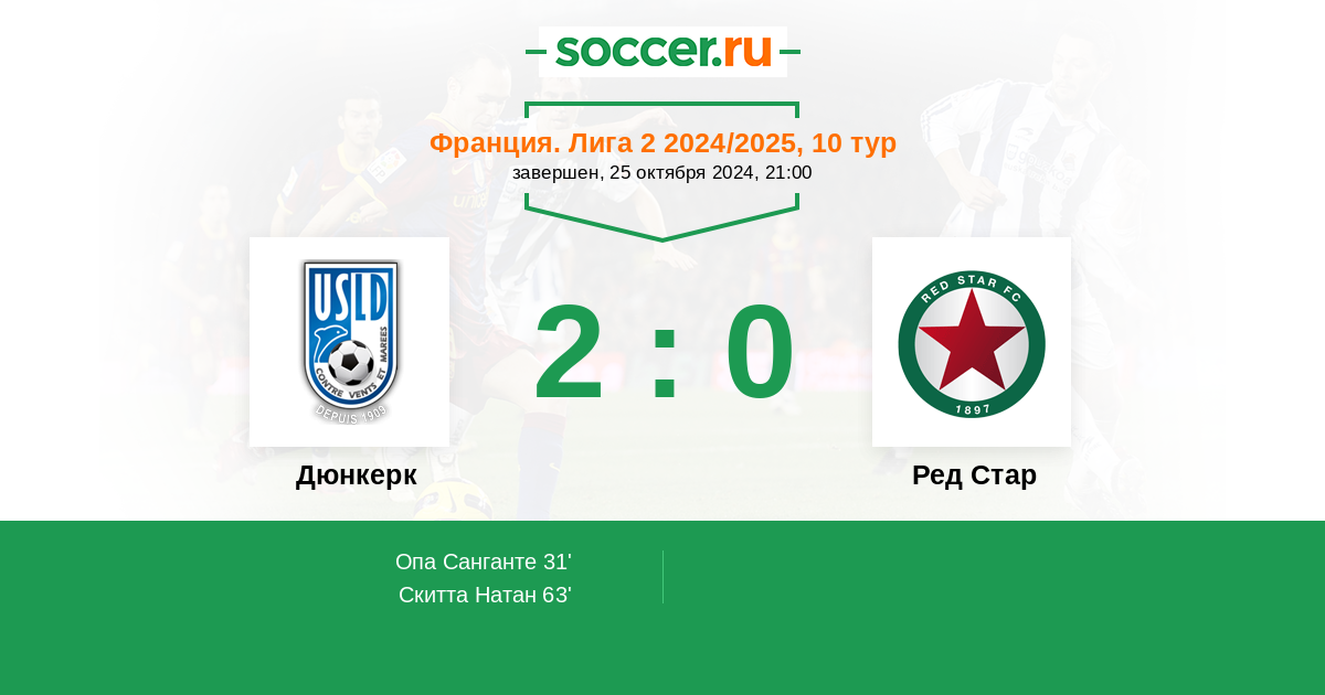 Протокол матча Дюнкерк против Ред Стар
