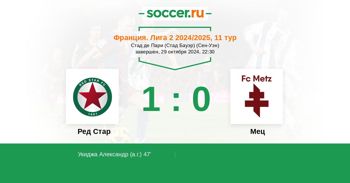 Протокол матча Ред Стар против Мец
