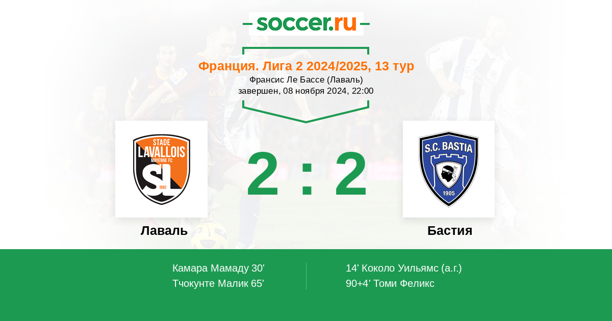 Протокол матча Лаваль против Бастия