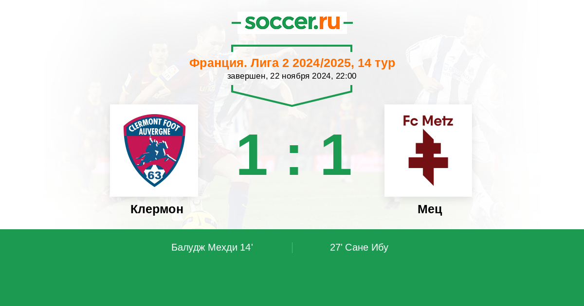 Протокол матча Клермон против Мец