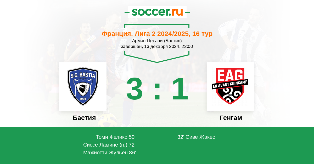 Протокол матча Бастия против Генгам