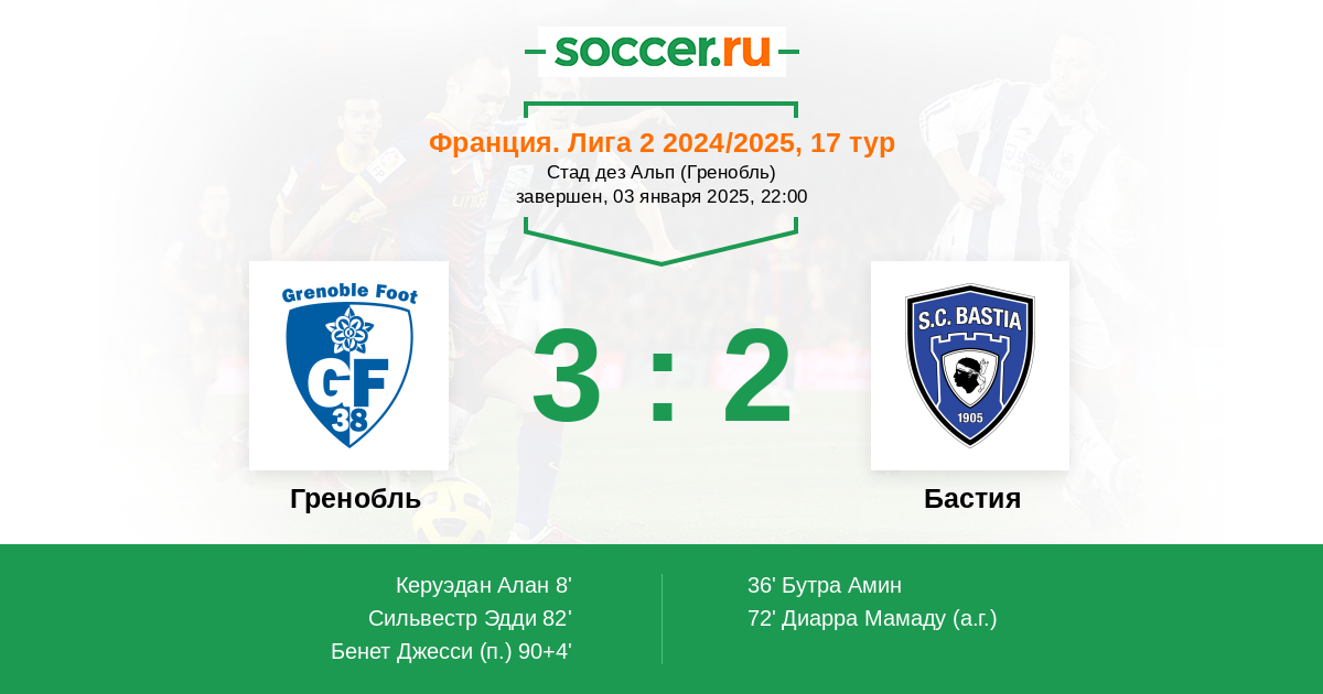 Протокол матча Гренобль против Бастия