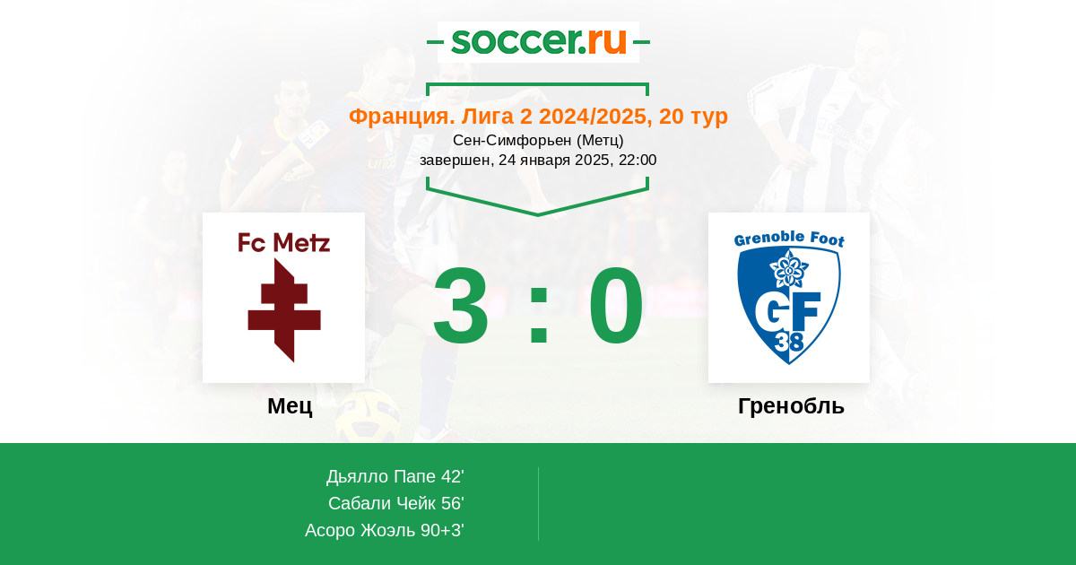 Протокол матча Мец против Гренобль