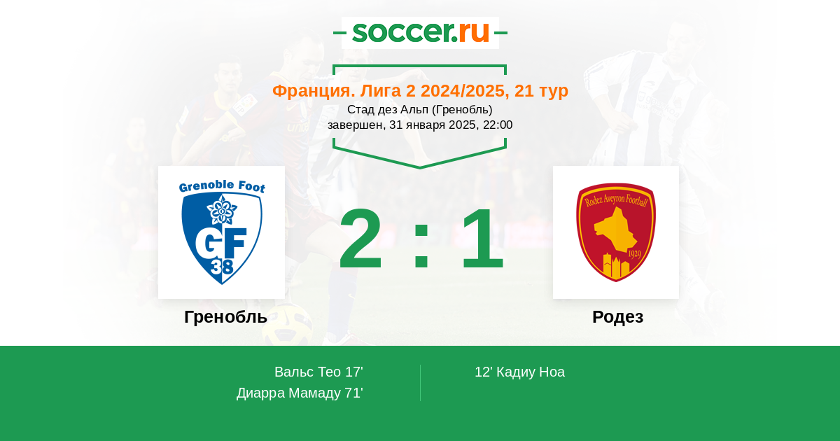 Протокол матча Гренобль против Родез