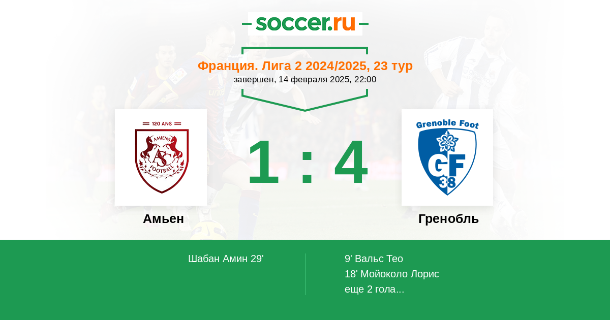 Протокол матча Амьен против Гренобль