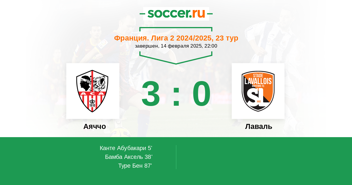 Протокол матча Аяччо против Лаваль