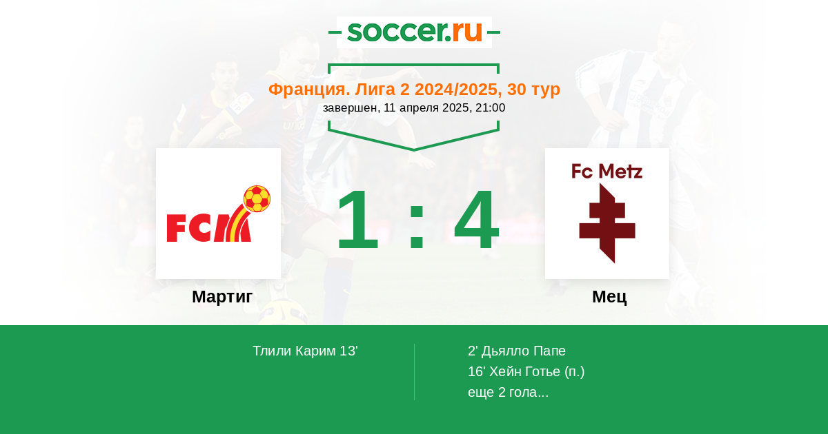 Протокол матча Мартиг против Мец