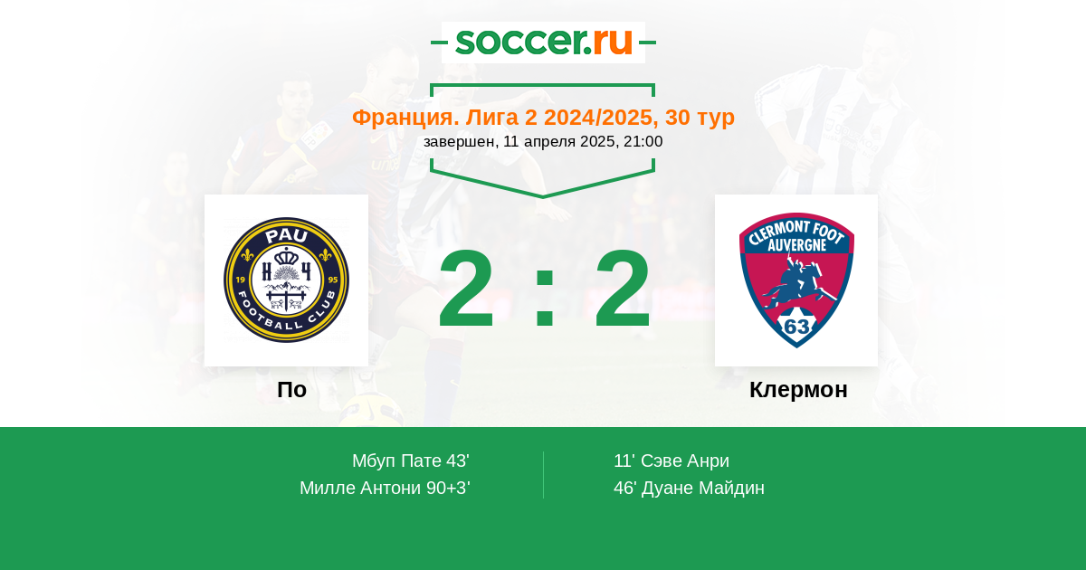 Протокол матча По против Клермон